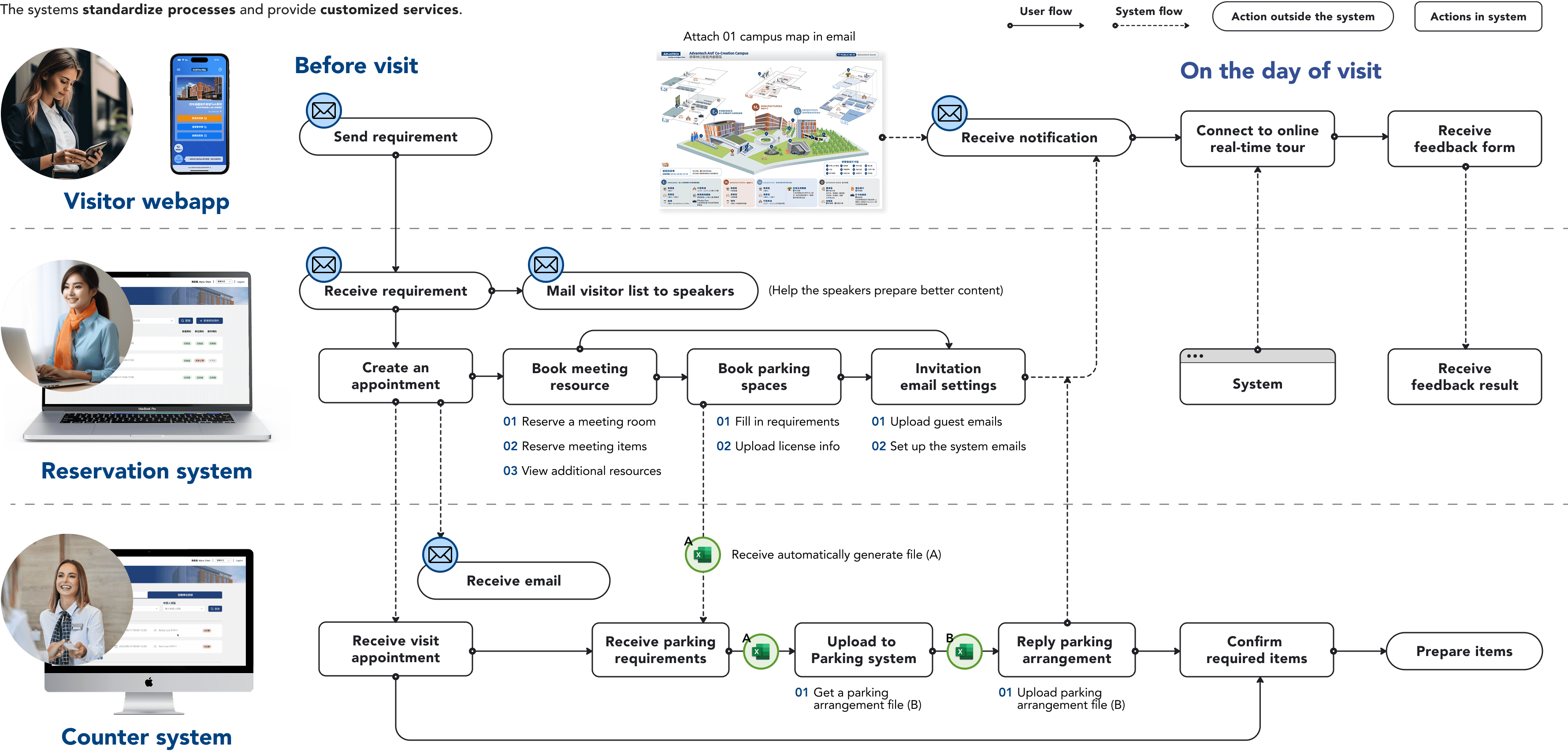 Helped Advantech identify and solve their internal problems to optimize staff workflows and create a seamless visiting experience from 0 to 1.