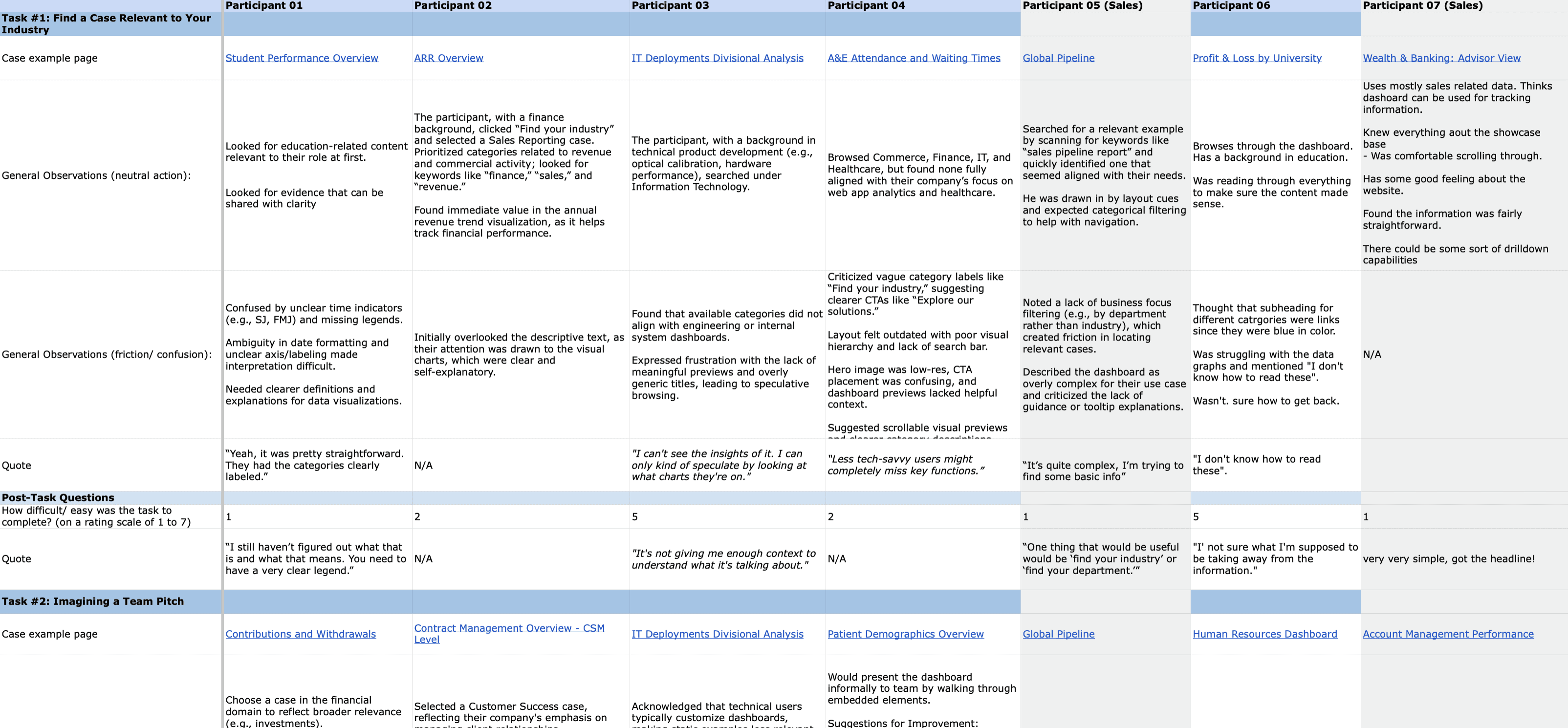 Our goal was to improve the Showcase page’s usability so potential clients could easily find relevant case studies and understand the business value of each dashboard.