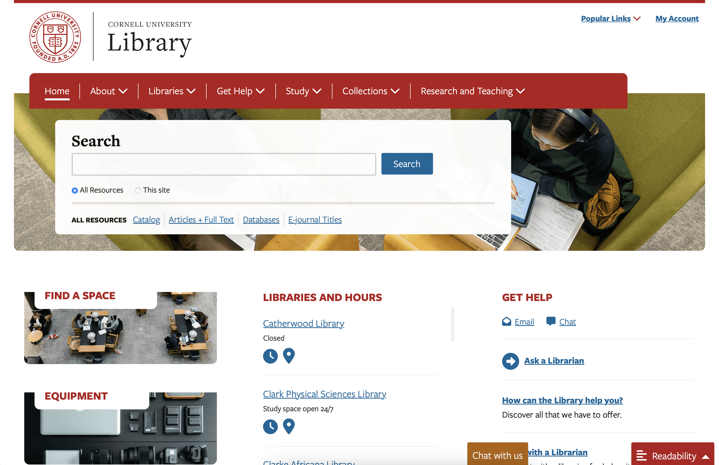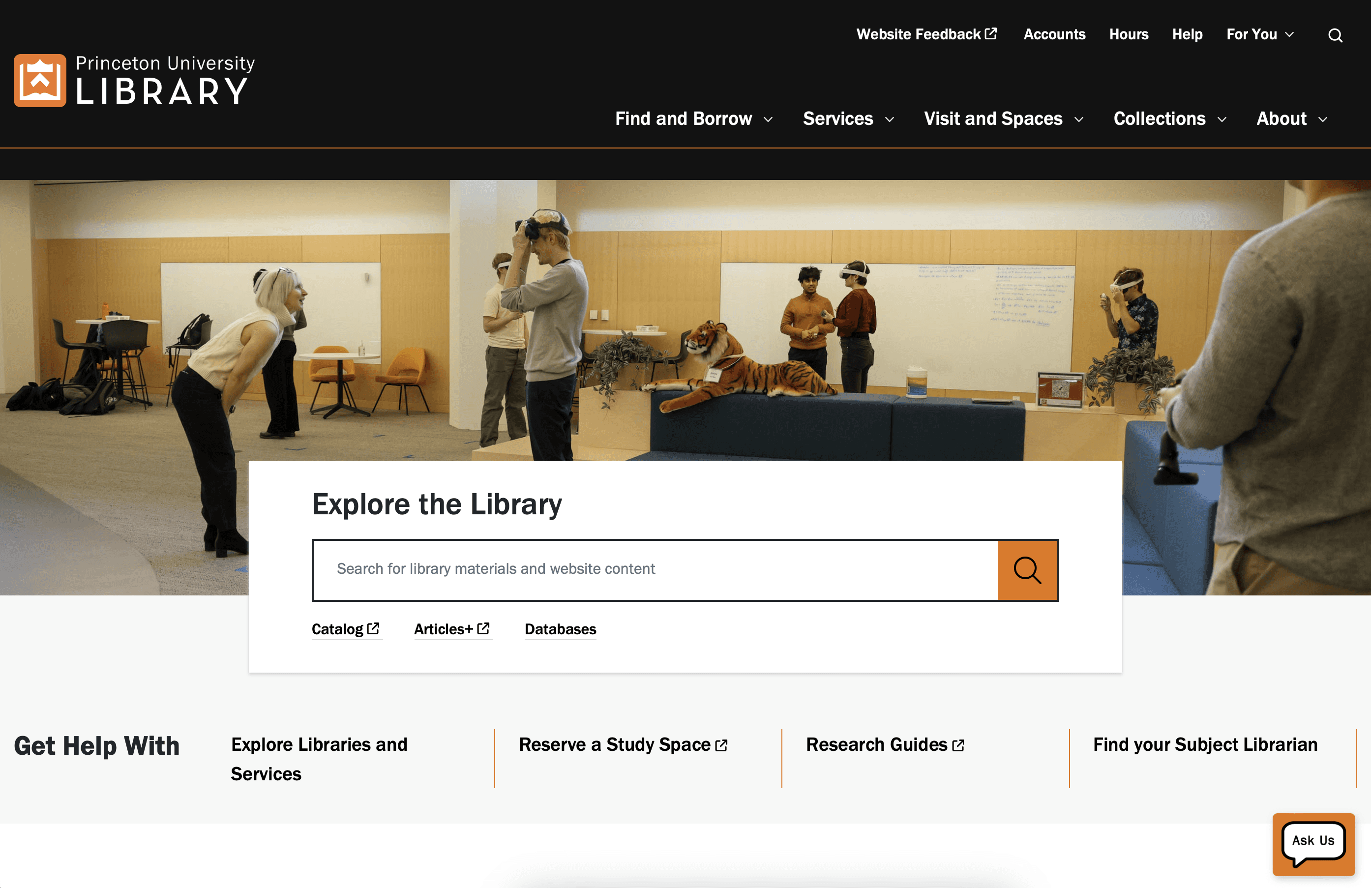Across 8 usability tests, users misused the catalog search as a site search and often relied on “Ask a Librarian” tools—highlighting a lack of clarity in the current site’s navigation and search experience.