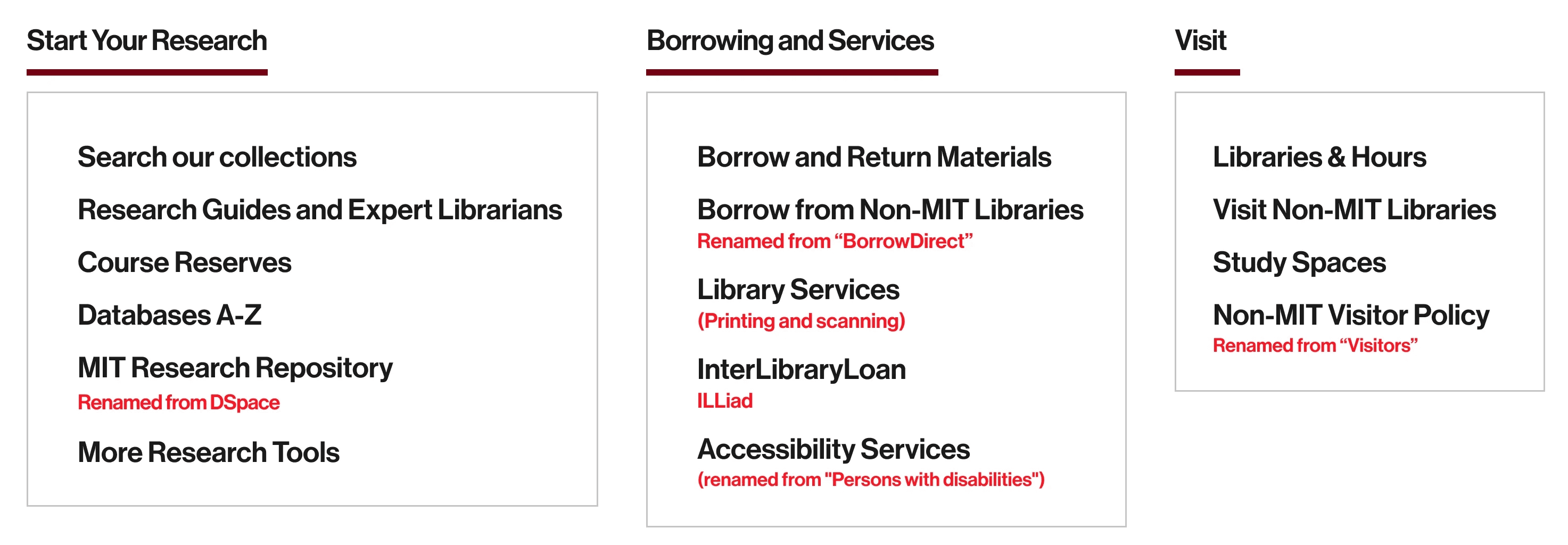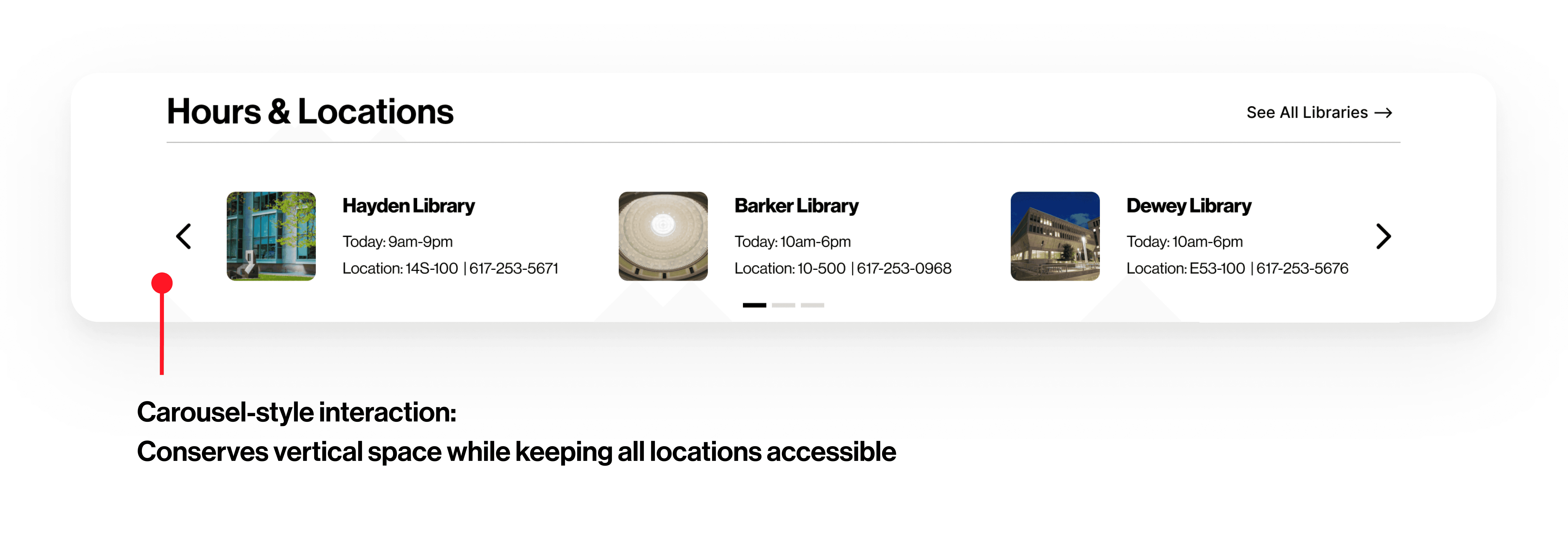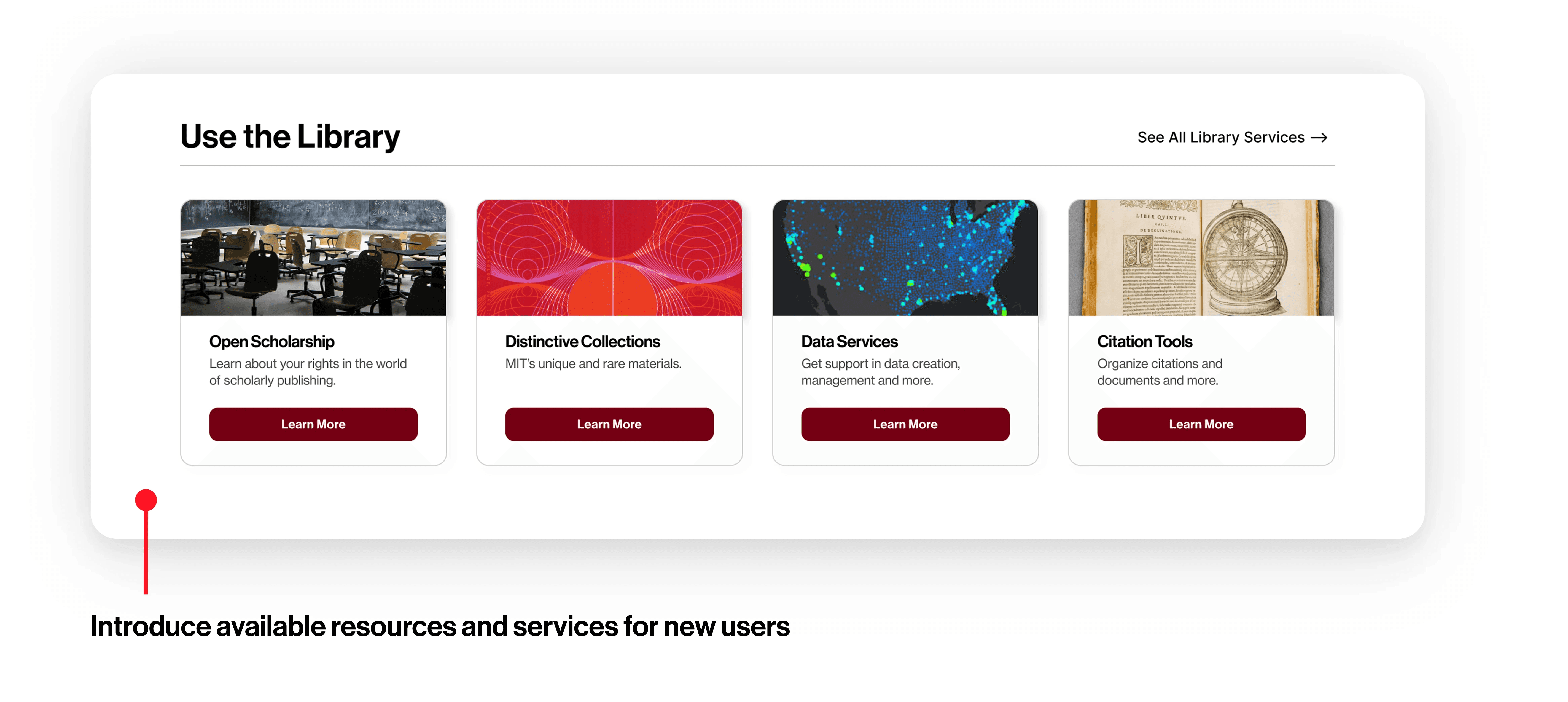 MIT Libraries were excited by the variety of homepage layouts and IA models we presented. They appreciated the fresh perspectives on structuring a library website and plan to conduct further usability testing to validate the designs. The team also intends to share elements from all four homepages with internal stakeholders as they move forward with their own redesign.