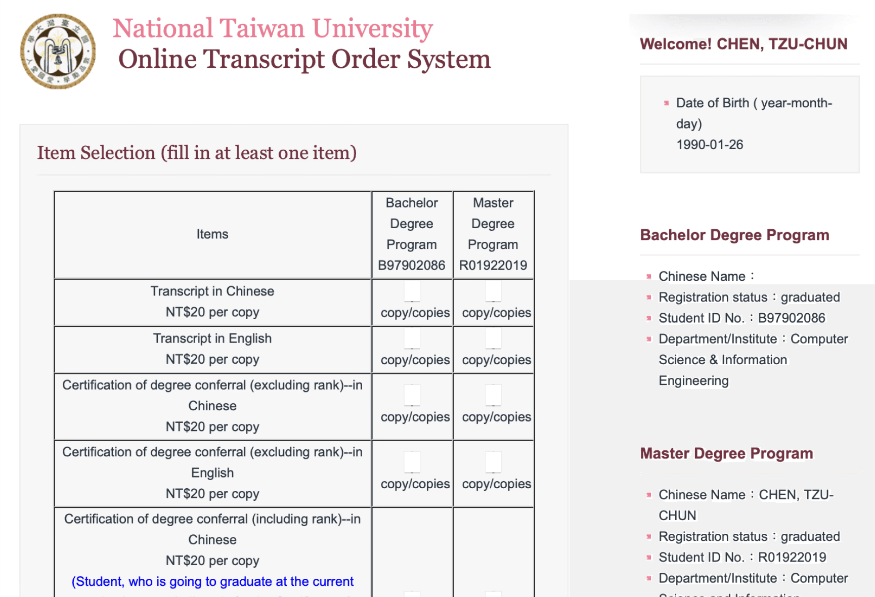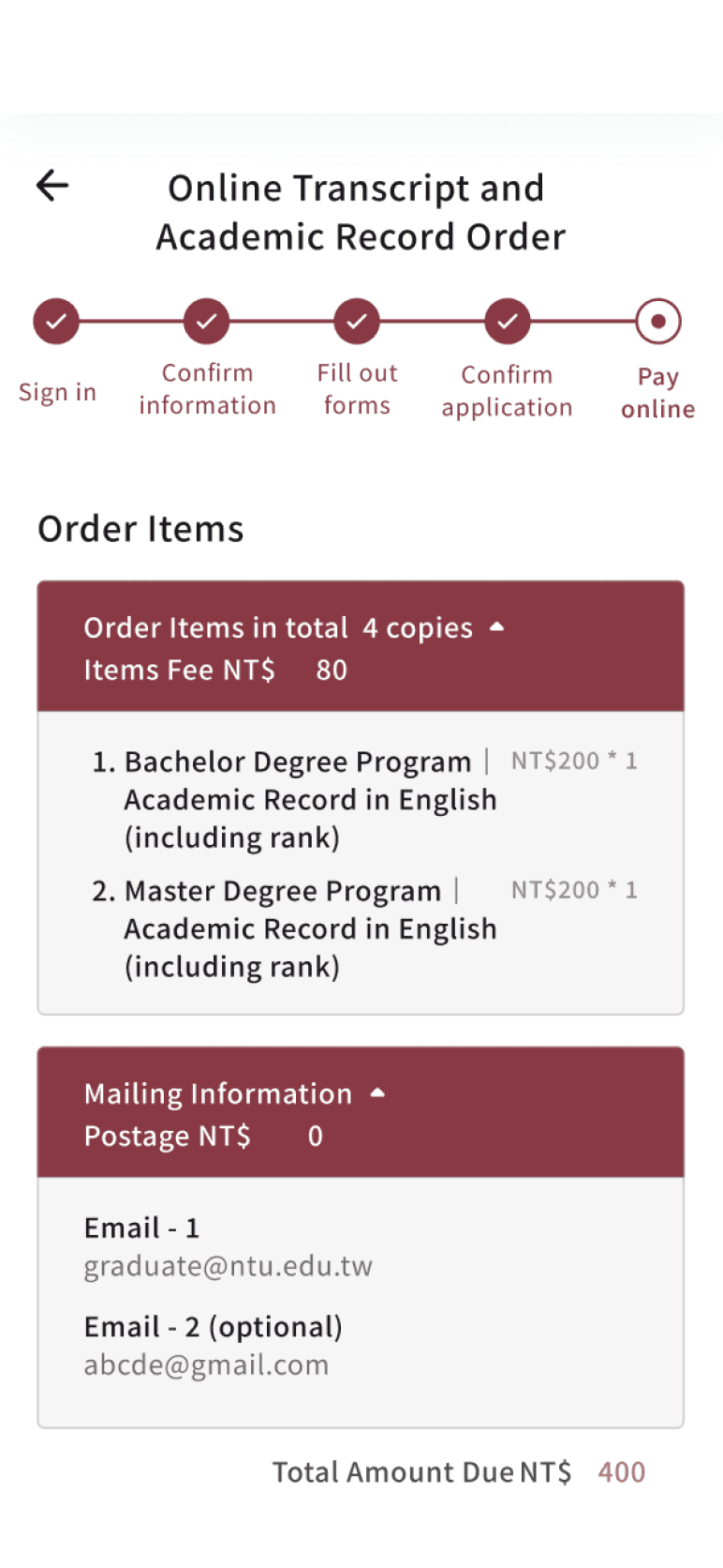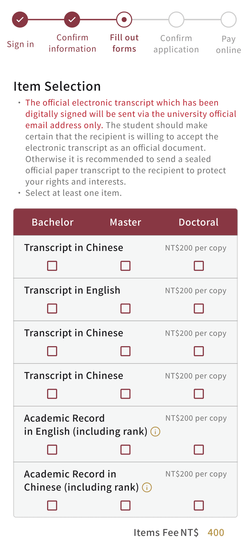 Redesign the system to improve the user experience of applying Transcript and Academic Record online.